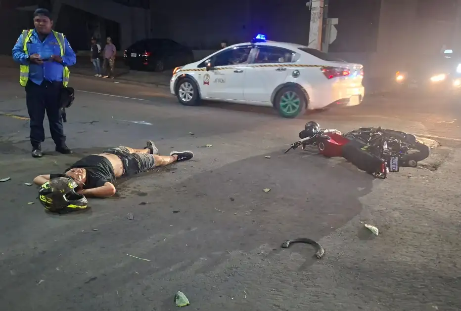 Con tremenda suerte corrió el motociclista Jean Real Hurtado, de 18 años, al perder el control de su vehículo de dos ruedas placas M 310-776 la madrugada de este sábado y resultar con golpes leves, en las inmediaciones de la rotonda de Plaza Inter una cuadra al sur.