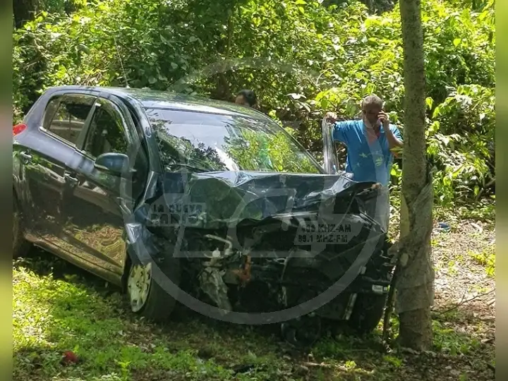 El reconocido locutor radial dijo a las autoridades que en plena marcha le estalló una de las llantas del carro que conducía, lo que provocó que se saliera de la vía e impactara contra un mojón de kilometraje y un árbol que evitó que cayera a un río de la localidad.