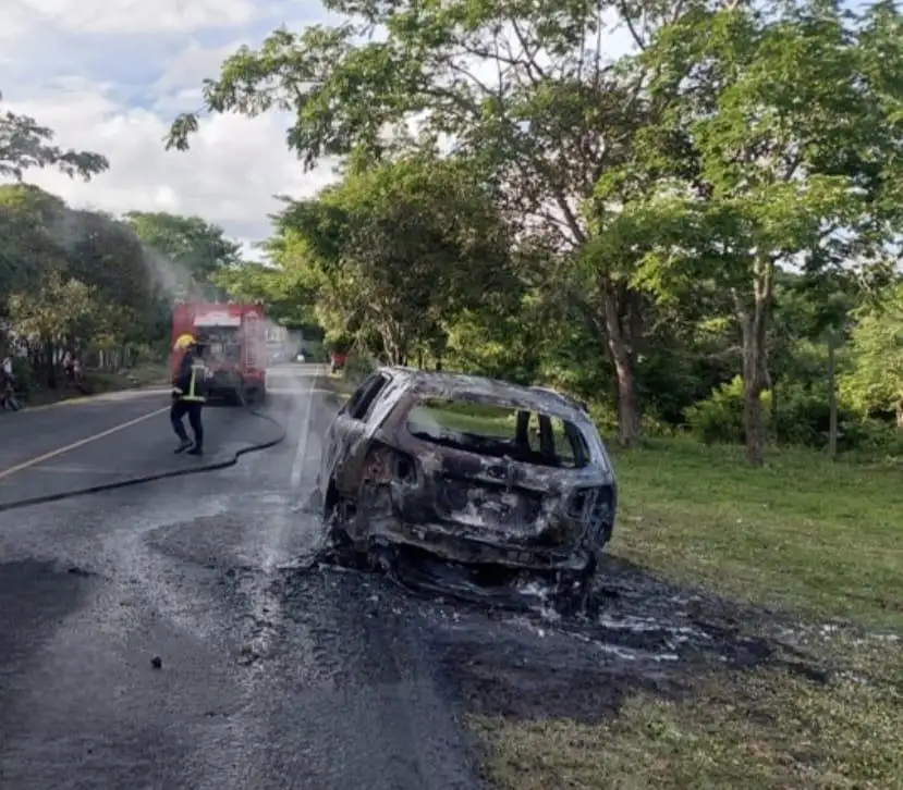 Los pobladores de la zona al percatarse del incidente hicieron el llamado a miembros de los Bomberos Unidos, quienes al llegar sofocaron las llamas, sin embargo, el carro ya había sido devorado.