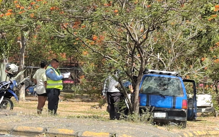 Un motociclista no identificado resultó con golpes leves después de colisionar contra el vehículo placas CZ 17-339 tras realizar una maniobra repentina en la intersección de Enacal Cental, en Managua.
