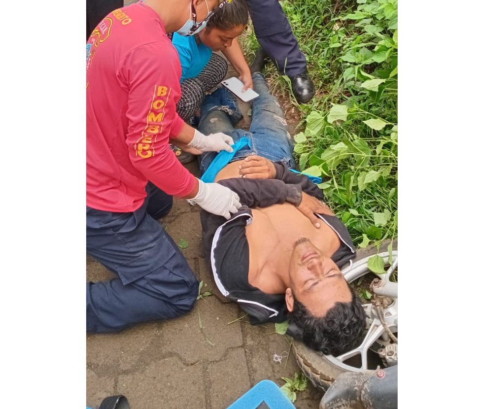 Con un trauma de tórax y múltiples golpes resultó Juan Francisco Gutiérrez Romero, de 27 años, al accidentarse en su motocicleta placas LE 428-04 en el municipio de Diriamba, Carazo, exactamente del colegio IDEAS, 100 metros al norte.