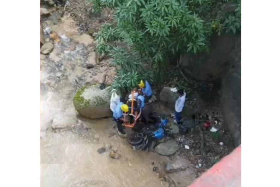 El hombre conducía una moto marca AKT color azul placa NS 33829 y al salirse de la vía cayó desde el puente a la ribera del río, a unos 4 metros de profundidad.