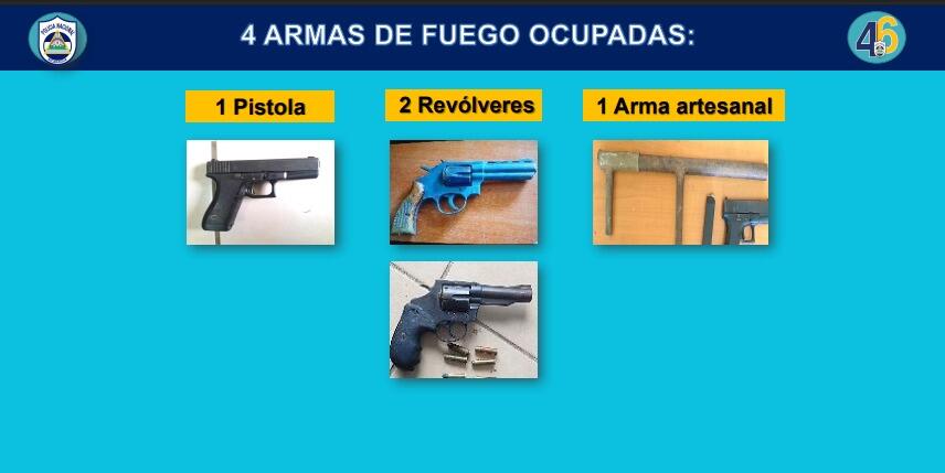 Asimismo, fueron ocupadas 4 armas de fuego, entre ellas 1 pistola, 2 revólveres y 1 arma artesanal.