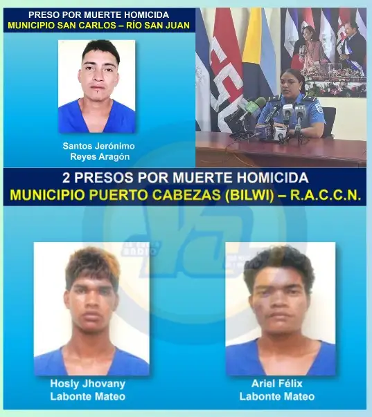 Hosly Jhovany y Ariel Félix, ambos de apellidos Labonte Mateo, fueron capturados por estrangular a Argentina Mateo Ronas, el jueves 13 de febrero del presente año, en la comunidad de Sangnilaya, en Bilwi, Puerto Cabezas, Caribe Norte.