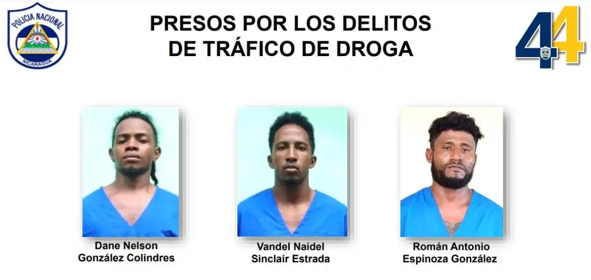 Los delincuentes capturados son Dane Nelson González Colindres, de 25 años; y Vandel Naidel Sinclair Estrada, de 23; quienes llevaban 25 libras de marihuana en el interior de una maleta.