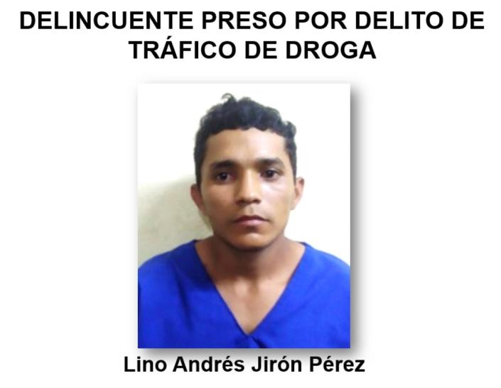 La jefatura policial en Chinandega informó que la mañana del martes 20 de septiembre fue capturado el sujeto Lino Andrés Jirón Pérez, de 20 años de edad, en el reparto Villa España, de Villanueva, por el delito de tráfico de drogas.