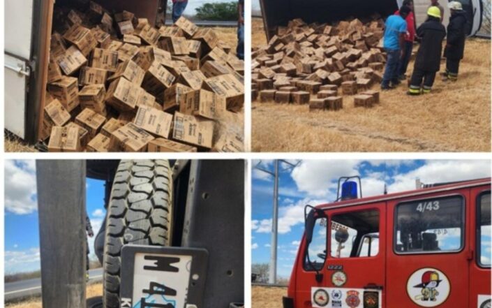 Aunque la carga y la estructura del camión sufrieron daños materiales considerables, la rápida intervención de los cuerpos de socorro y la salida ilesa de sus ocupantes fue lo más destacado del suceso.