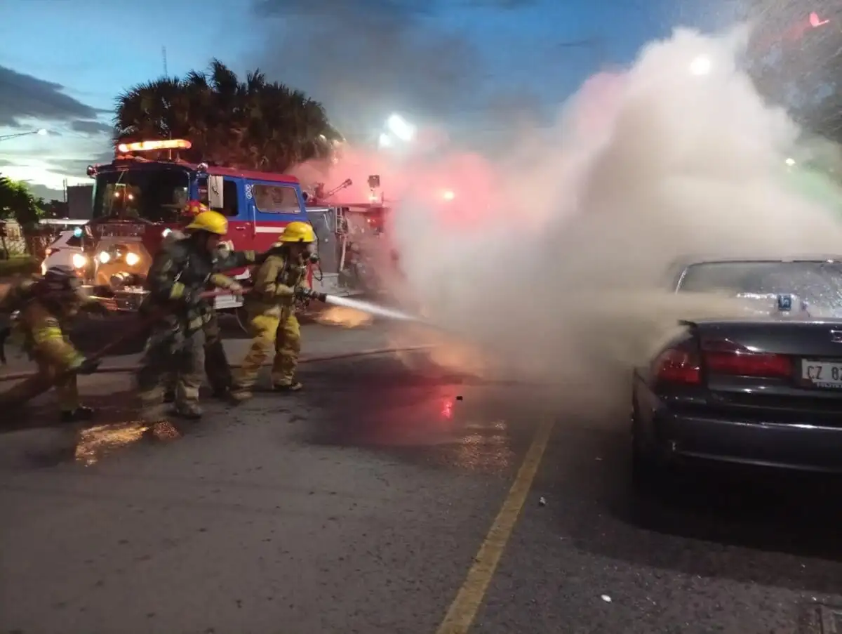 En cuanto Juan Carlos se percató de las llamas que salían del motor, detuvo la marcha, agarró su extintor e intento sofocar el fuego, en tanto, llegaron los Bomberos Unidos, a controlar la situación.