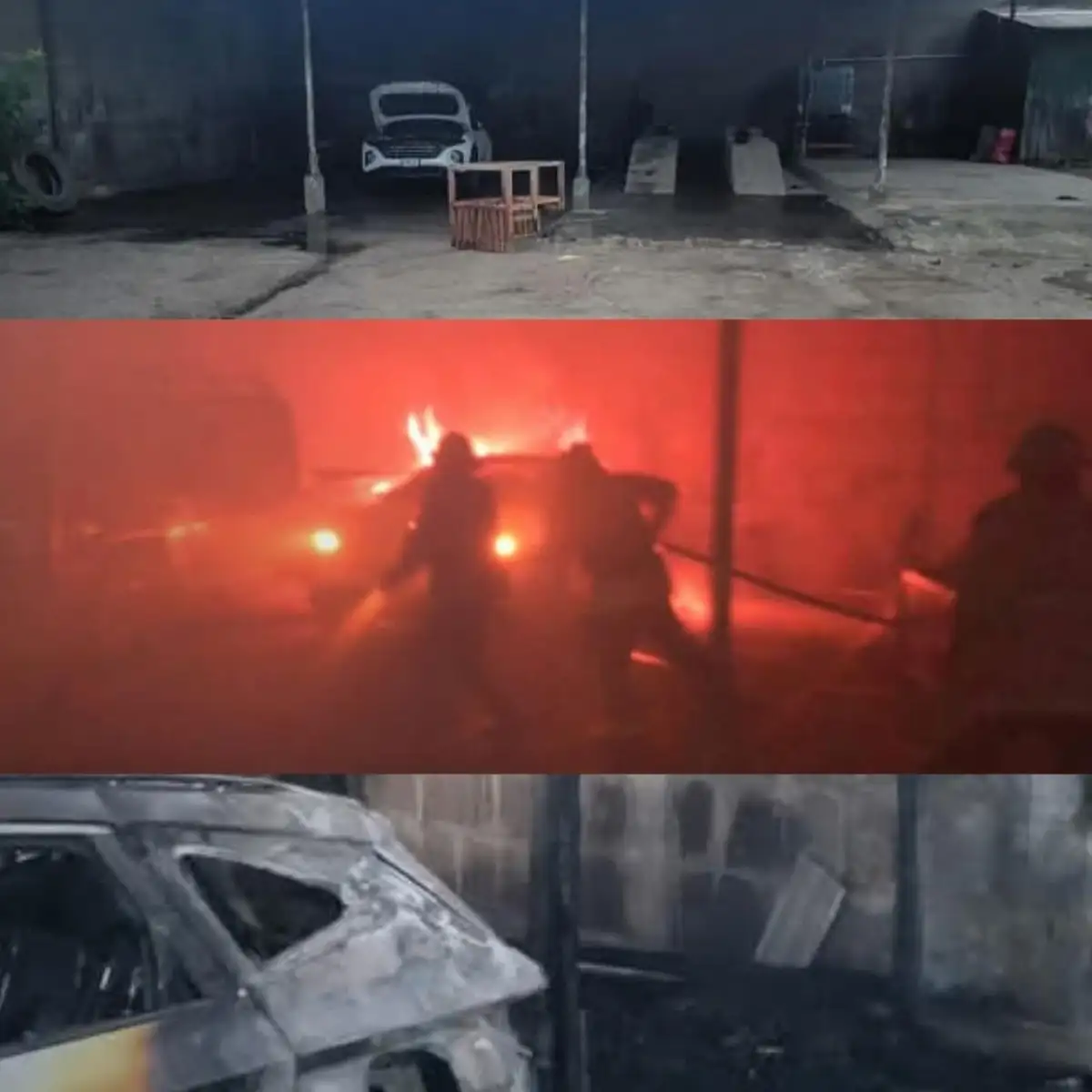 Al lugar del incendio se presentaron miembros de los bomberos unidos a sofocar las llamas que dejaron parcialmente dañados dos vehículos que estaban guardados en el negocio.
