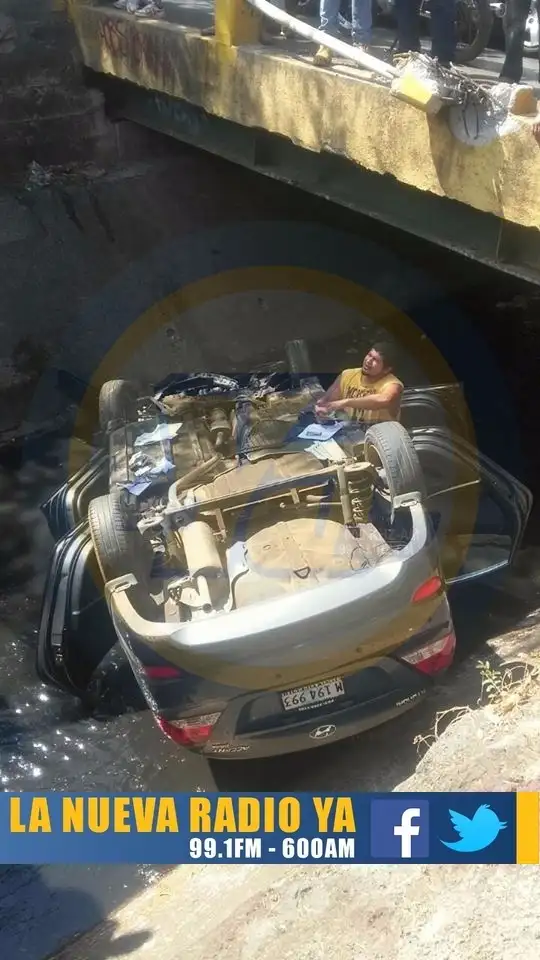 Marcio Castañeda, de 40 años, esta vivo de milagro a pesar q a las dos de esta tarde con todo y carro cayó en el cauce frente al parque de villa El Progreso. El suertudo hombre fue llevado al hospital...