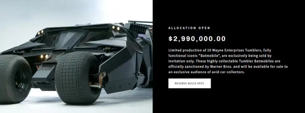 Batmóvil de la trilogía de Batman llega en versión de lujo por USD $2.9 millones de dólares
