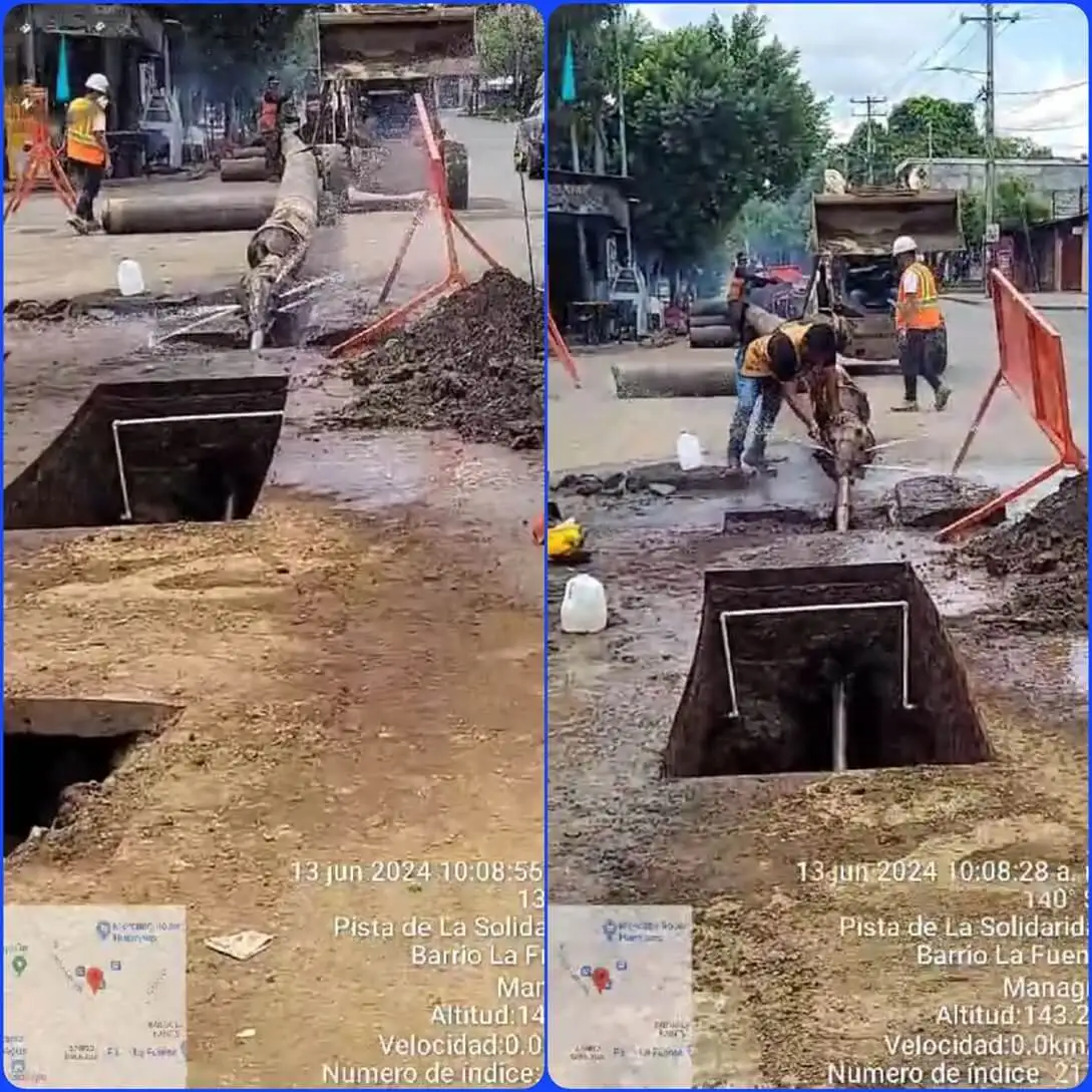 Enacal anuncia suspensión de servicio de agua por acople en tuberías en pista a Sabana Grande