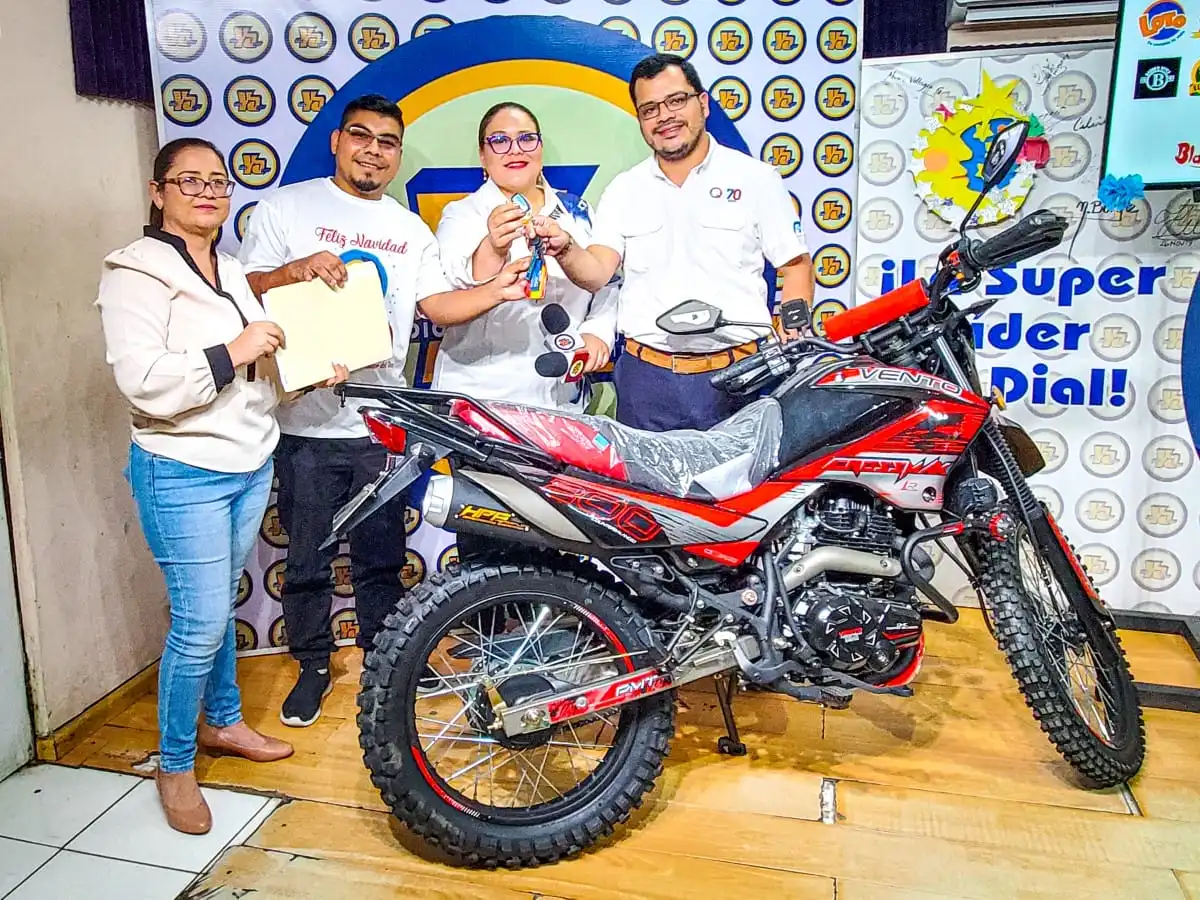 Una moto nuevecita marca Vento, modelo Cross Max 200, valorada en mil 800 dólares, es el fabuloso premio que se llevó Juan Gabriel Ponce Pinell, de 27 años, al participar en el Fiestón Navideño 2023 de Tu Nueva Radio...