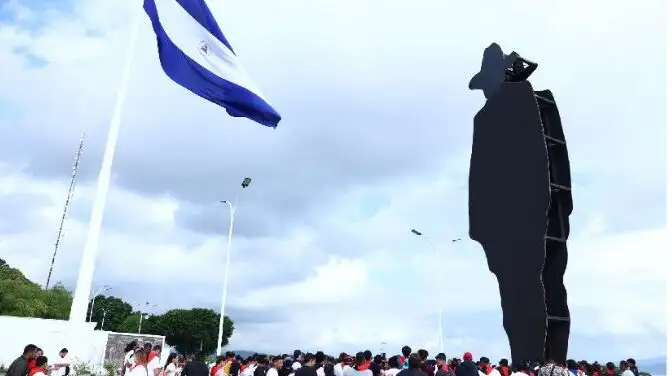 Juventud Sandinista coloca ofrenda floral en el monumento al General Sandino en Loma de Tiscapa