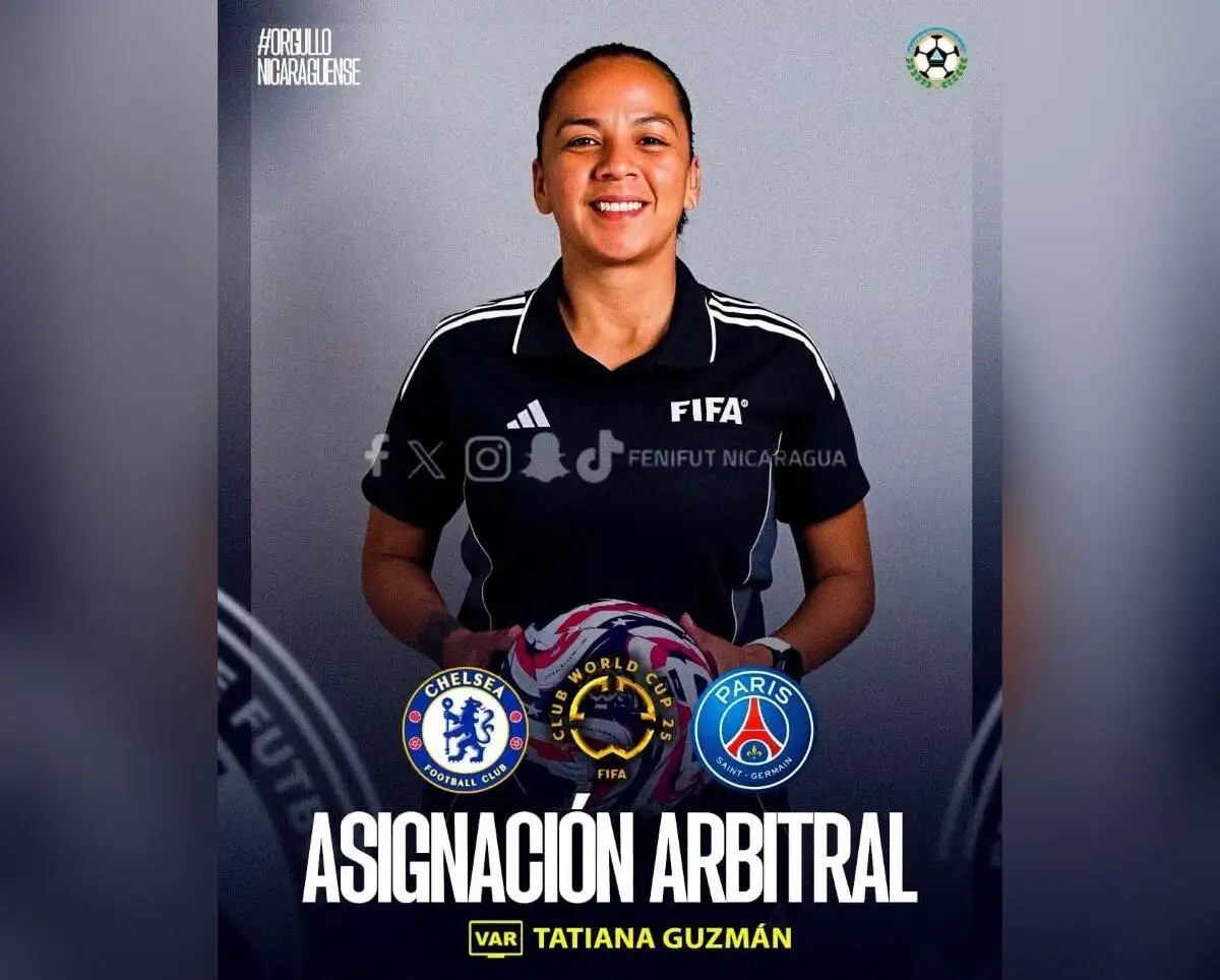 La arbitra nicaragüense Tatiana Guzmán recibió una medalla en reconocimiento por su participación en la final de la Copa Mundial de Clubes, donde el Chelsea venció 3-0 al París Saint Germain. A lo largo del torneo Guzmán fue parte de...