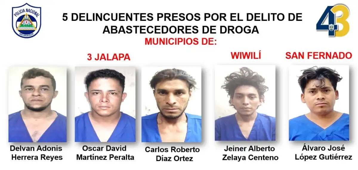 Cinco abastecedores de drogas y otros delincuentes son arrestados en Nueva Segovia