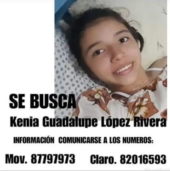 La jovencita Kenia Guadalupe López Rivera, de 13 años de edad, desapareció desde el martes 8 de enero a las 12 del mediodía, cuando salió de su casa hacia una pulpería en el barrio Roberto Vargas, en el municipio...