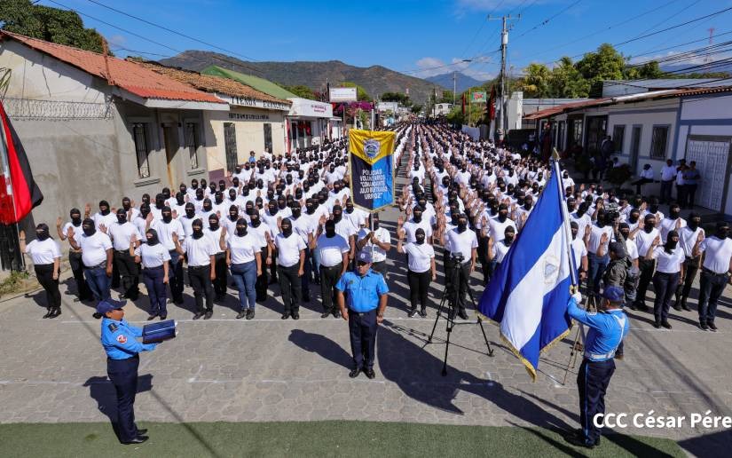La jefatura de la Policía Nacional presentó y juramentó este viernes en Ocotal, Nueva Segovia, a la Policía Voluntaria «Comandante Julio Buitrago Urroz», quienes asumieron el compromiso de apoyar en la defensa de la paz, la soberanía y la tranquilidad de las familias en Nicaragua.