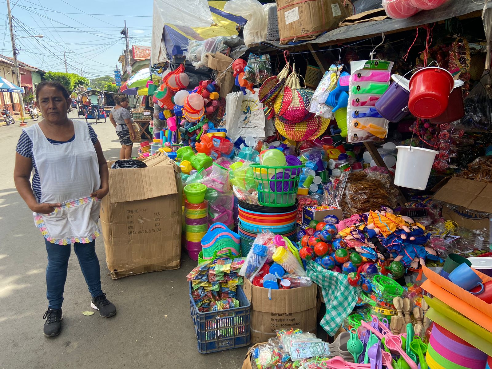 “Vengo a ofrecer indios, matracas, dulces y todo lo que siempre buscan los clientes para dar en sus gorras. Yo vengo a Chinandega a vender desde pequeña”, dijo Xiomara Vásquez, comerciante de Masaya.