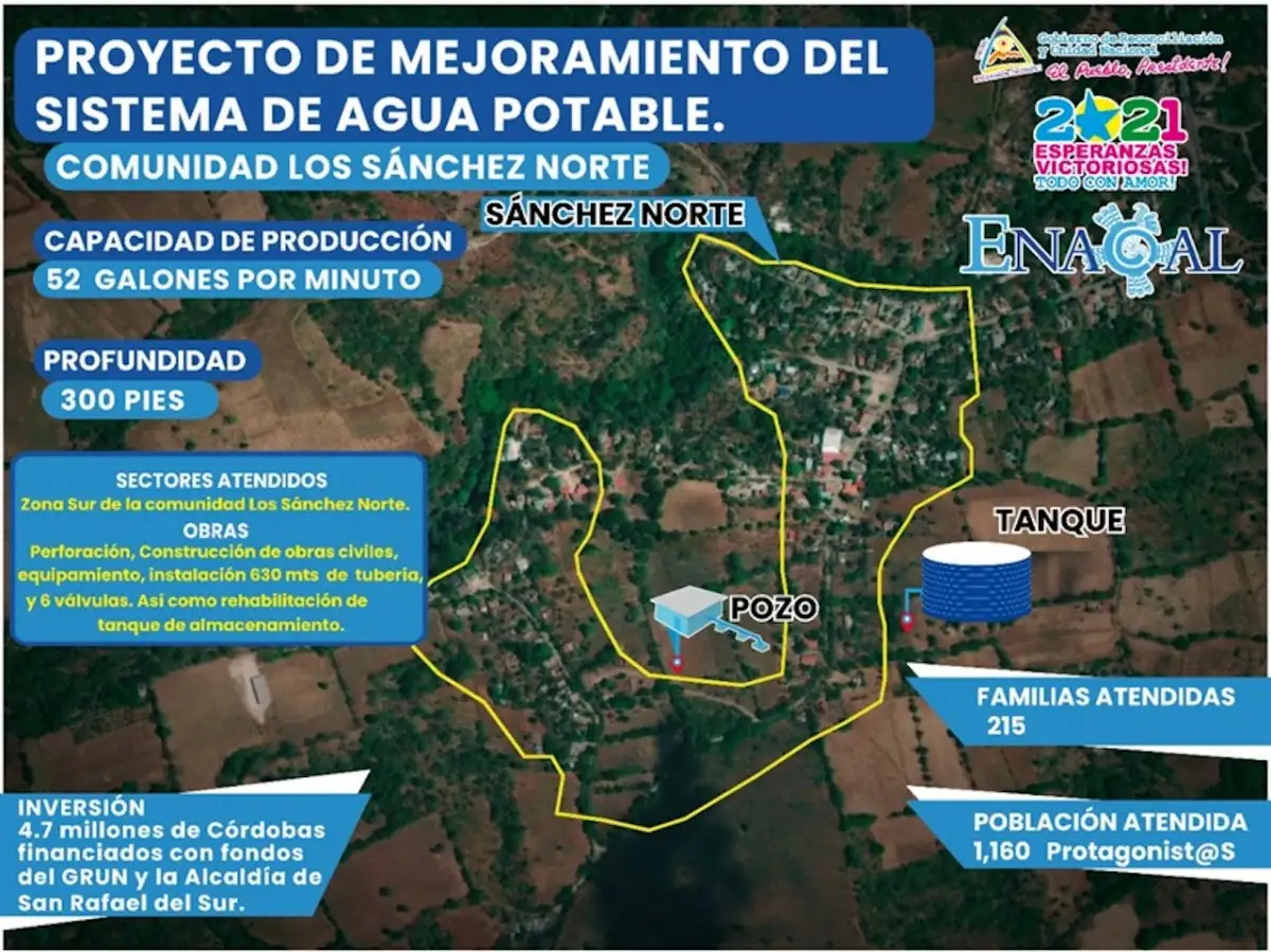 Este proyecto incluye la perforación de pozo, obras civiles, equipamiento, energización, instalación de 630 metros de redes y rehabilitación del tanque existente.