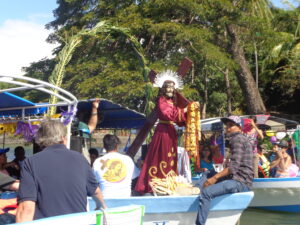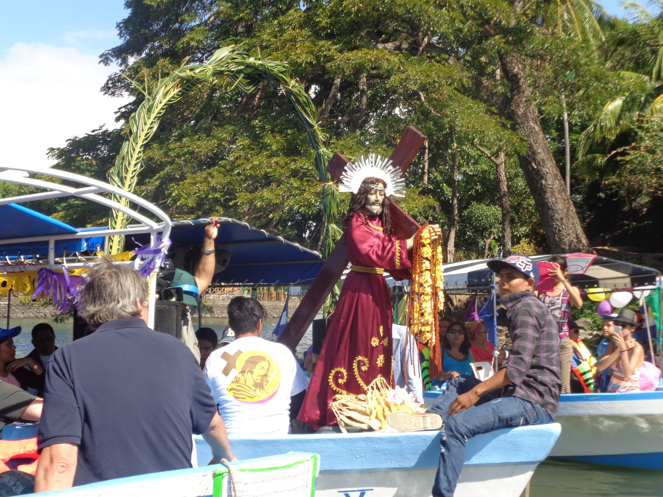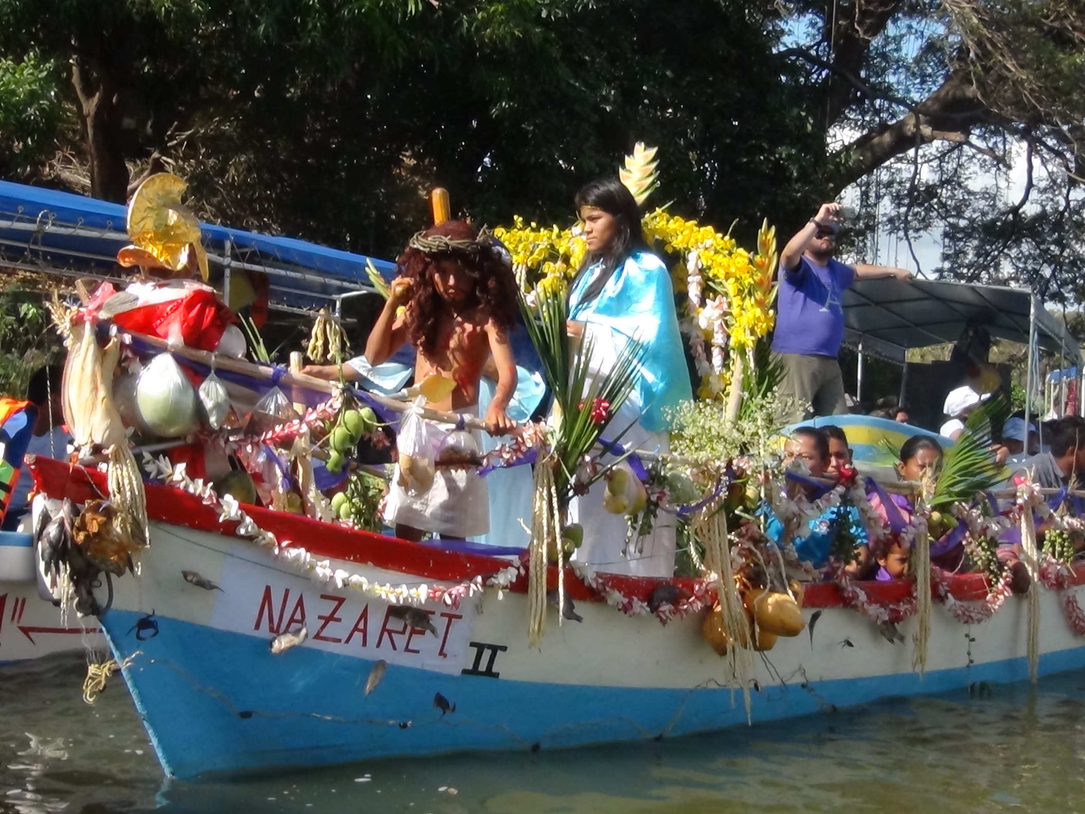 En el tradicional evento que promueve el INTUR junto al Instituto Nicaragüense de Cultura, participaron 13 botes adornados con flores y artículos religiosos, recreando distintas escenas de la pasión y muerte de Jesús interpretadas por niños.