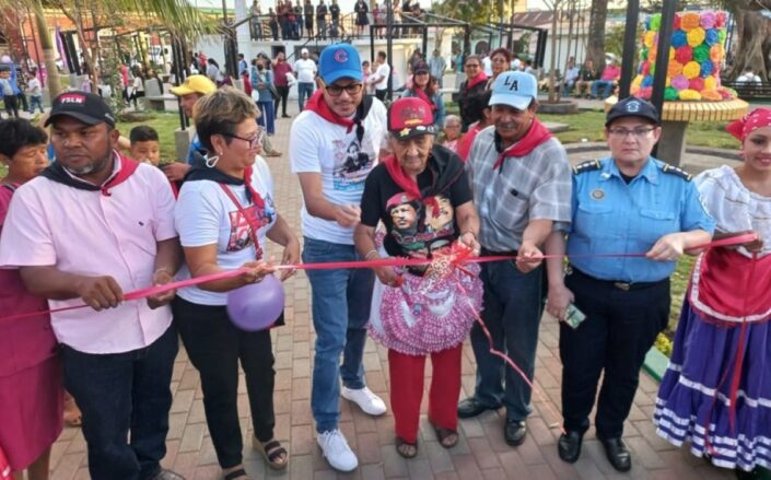 Familias de Diriamba, Carazo, junto a las autoridades locales inauguraron en un acto solemne, la primera etapa del proyecto de remodelación del Parque Rubén Darío en celebración al Día Internacional de la Mujer.