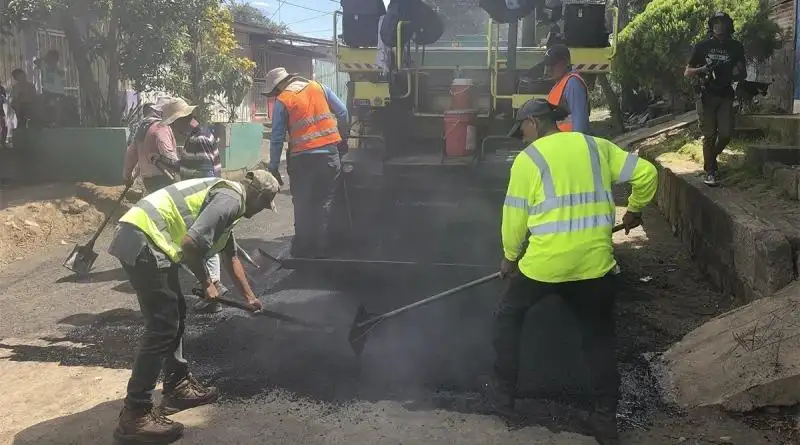 Trabajadores de la alcaldía de Managua avanzan en el recarpeteo de 9 cuadras de calles en el Anexo Villa Libertad, distrito siete de la capital, donde este miércoles, la obra fue supervisada por la compañera Reyna Rueda, alcaldesa capitalina.